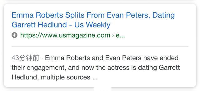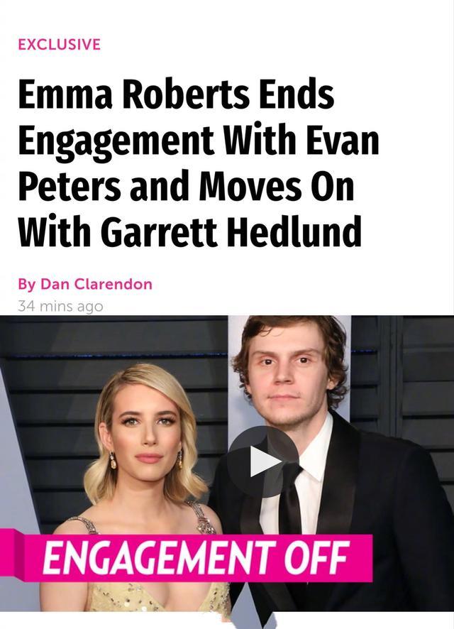 具体艾玛·罗伯茨与Evan·Peters何时取消婚约,我们无从得知,但想必有段时间了。如今艾玛已经有新男友,名叫Garrett·Hedlund,二人已经住在一起,艾玛果然一点空窗期都没有。