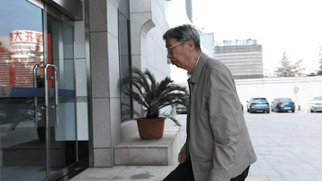 他为了怕来这找他的人到这里找不到他,因为这楼里的人也少了。他就贴了个条,说每周一、三、五上午九点到十一点上班。来看他的人一看就知道,还有搞卫生和保洁的人,不用给他倒开水了。他自己写的这个条。